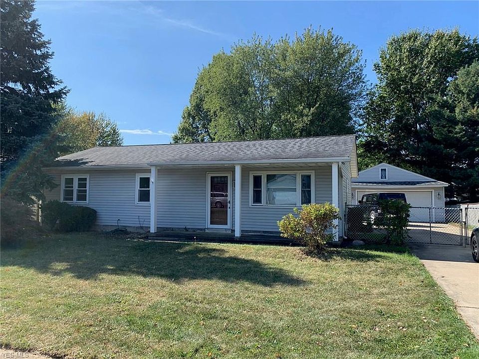 Move Right into this Nicely Updated Three Bedroom Ranch W/Large Family Room Addition! Covered Front Porch! Master Bedroom access to Full Bath, Double Closets, one is a Walk-in Closet and a Bonus/Sewing/Office Room! Nicely Updated Kitchen with Bay Window, Additional Cabinets & Ceramic Tiled Flooring through the Spacious Laundry Room! Stove and Fridge Stay! Family Room has Newer Anderson Windows New Carpeting and is Freshly Painted! Central Air Conditioning! Over sized Two and a Half Car Detached Garage Has Opener 220 Electric, Lots of Outlets, Work Bench and additional storage above. There is a Private Covered Patio Area and also a Insulated She Shed/Man Cave! The Yard is Fully Fenced and a Double Wide Driveway! Check this One Out! You will Not be Disappointed! Quick Occupancy is Available! A One Year Homeowner Warranty is Included for Peace of Mind!