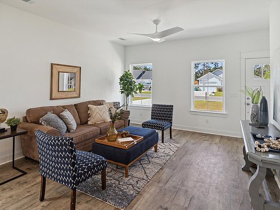 Lakefront Living! Discover coastal living in this beautiful 3-bedroom, 2-bathroom cottage, located in Darien, Georgia. Ashantilly Cottages offers a 5 acre lake with a dock. This property backs up to the lake, wake up every morning to the beautiful view of the lake out of your master bedroom windows, or off of your back patio. This home features hardie-plank siding, granite counter-tops, LVP flooring in the common areas, a 1 car garage, large master closet, and an open-concept floor-plan. Listing agent is related to a member of the construction company.