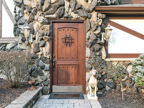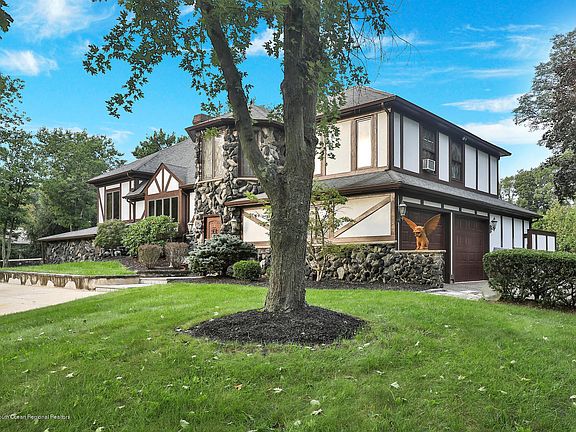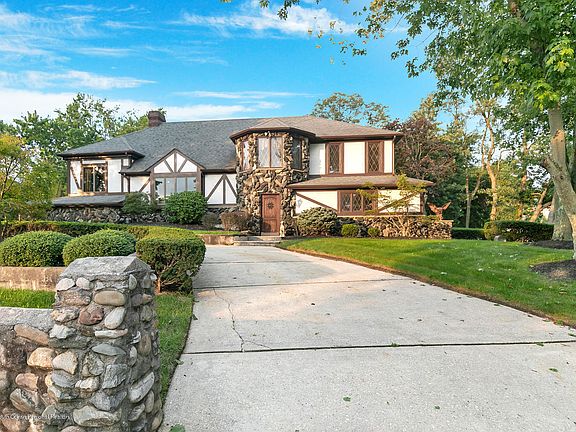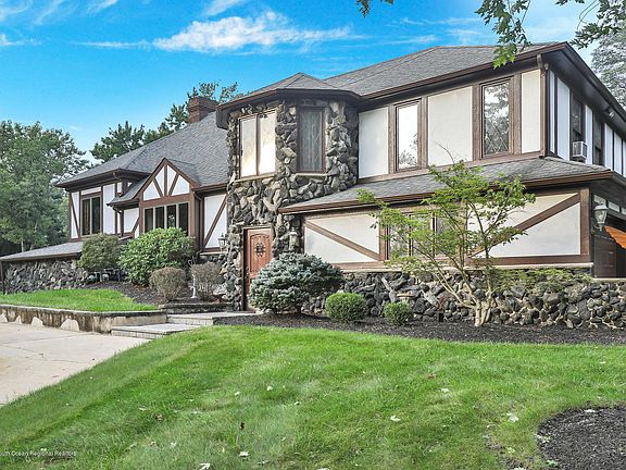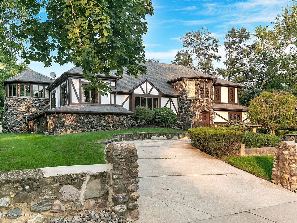 Classic Tudor and stone home with old world charm and plenty of room to spread out. This expansive home offers wonderful spaces to entertain and enjoy hobbies. The home boasts 3 to 4 bedrooms and 2.5 baths, including a large first floor bedroom with lots of closet space. The main floor features a living room, expansive dining room overlooking a gorgeous lawn, recently renovated kitchen with granite, cherry cabinets, stainless appliances, and center island with range and hood. A trip up the winding staircase leads you to a wonderful turret room overlooking the patio, pool and yard. The master suite includes full bath and separate sitting room, that can be changed back to a 4th bedroom. Lower level continues to impress...den with coffered ceiling and stone bar area, plus