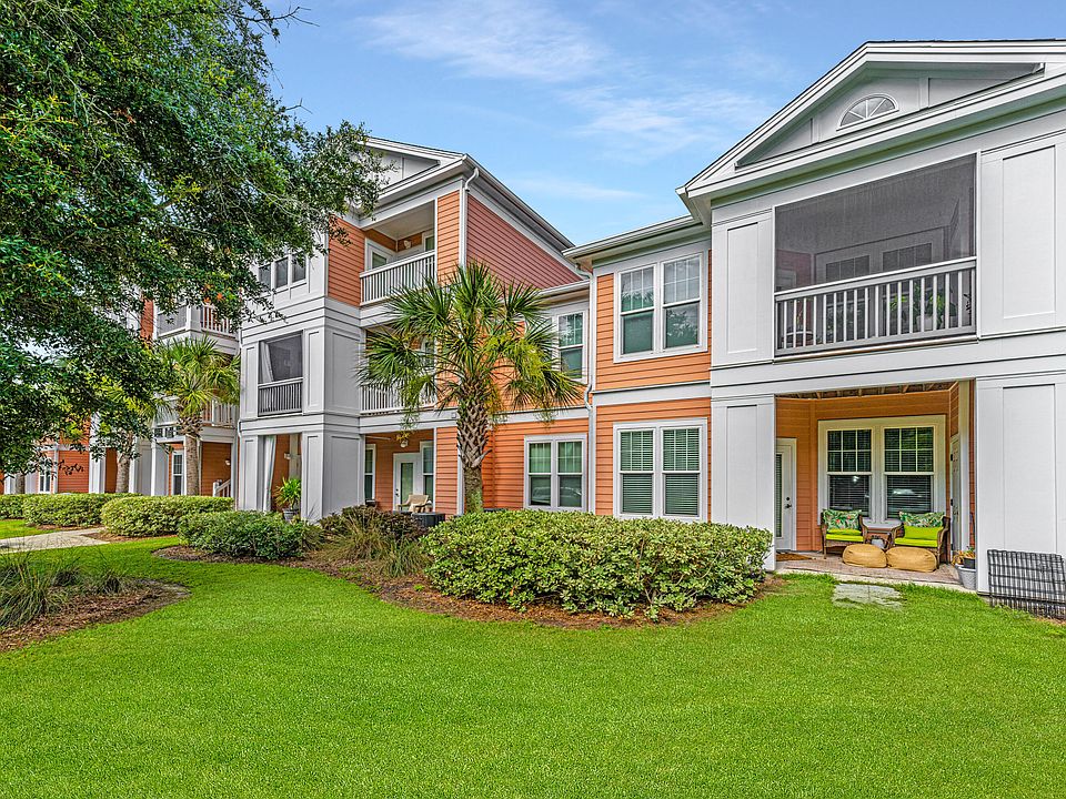 First floor unit meticulously maintained with tile entryway, detailed workspace with granite counter top and built-in shelves. This open floor plan design has a beautiful kitchen with breakfast bar, granite countertops, smoothtop KitchenAid range, quiet 44-decibel dishwasher, and white custom cabinetry that opens to the family room and dining room. Enhanced with smooth high ceilings and elegant crown molding. Just off the family room, you can access the patio with an additional storage closet. The master suite also has access to the back patio, and enjoys a huge walk-in closet with additional shelving for shoes and linens. Easy access to unit with no steps and close and abundant parking. It's a truly remarkable property with an abundance of natural light, located in the heart of Mount Pleasant - conveniently located to I-526, Towne Center, the beaches, and downtown Charleston. The amenities will blow you away and include a beautiful resort-style pool, gas grills, recently renovated fitness center, clubhouse, tennis court, bocce ball court, boat storage, car care center, dog park, gas firepit, walking trails, and hammocks! The clubhouse includes a business center, billiards room, foosball table, kitchen, and a cozy great room for entertaining.