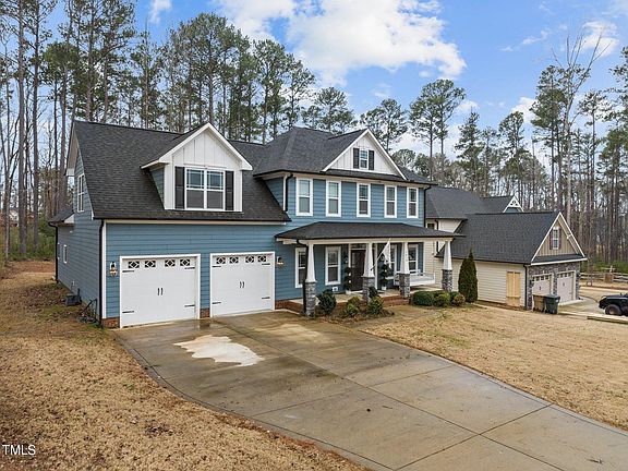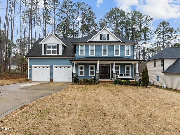Welcome to this beautiful 2018-built craftsman-style Cumberland home, situated on a spacious .64-acres in Leone Landing. This exquisite property rests on a serene cul-de-sac and features 3 bedrooms, 3.5 bathrooms and a large primary suite conveniently located on the first floor. A sensible floorplan (every bedroom has it's own connecting bathroom), complemented by well-appointed finishes, creates a welcoming and luxurious atmosphere. Large 2 car, fully insulated garage with epoxy floors and 220V for EV charging offers enough room for parking and projects. The huge bonus room and additional large flex space are perfect for entertainment or relaxation. And If that's not enough space, the expansive 317 sq. ft. unfinished walk-in attic offers a fantastic opportunity for expansion, adapting to your lifestyle needs. Outdoor living is a delight with sprawling front (swing conveys!) and back porches, a patio area, and massive tree buffer at the rear of the lot. A perfect setting for gatherings or peaceful solitude. Positioned ideally for both nature lovers and city commuters, the home is within a 20-minute drive from downtown Raleigh and close to various parks including White Deer Park and Lake Benson Park. With its prime location near the proposed 540 loop and its impeccable condition, this home is a remarkable find, ready to create lasting memories for its new owners.