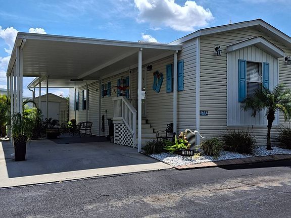 What a Gem with Beach Vibe curb appeal! Welcome to this adorable 2-bedroom, 2-bath, 2013 home tucked away in the peaceful 55+ community of Merritt Island Village on Florida's beautiful Atlantic Coast. This Seaside DREAM HOME awaits your arrival! Step inside where modern comfort meets convenience with a desirable split floor plan - bedrooms at either end. Relax in the heart of this home with luxury vinyl flooring underfoot for easy maintenance, while plush carpet creates a tranquil setting in the bedrooms. Enjoy the harmonious blend of tropical charm and contemporary design as you prepare culinary masterpieces in the lovely eat-in kitchen equipped with relatively new (replaced in the last three years) stainless steel appliances, an abundance of modern cabinetry, ample counterspace, and a beautiful tiled backsplash. Up front, the guest bathroom received a fresh update this year with a new vanity, sink, and backsplash, where you can treat yourself to a spa-like experience. Currently, the guest bedroom is being used as an office; however, consider options such as a guest room, craft room, library, or exercise room. The possibilities are endless. Retreat to your master bedroom with privacy and tranquility. The en suite is spacious with a walk-in shower and a separate powder room. This seaside sanctuary even has an indoor laundry room for your convenience, also providing sufficient shelving for household necessities and storage. On the exterior, a 10x12 shed is perfect for storing extra gear for your trips to the ocean, and an outdoor patio area is ideal for enjoying the Florida climate under your shaded carport. Whether you are looking for a home full-time or a seasonal escape, this is the perfect opportunity to begin the Florida lifestyle you deserve. Merritt Island Village is a pet-friendly community, so your furry family members can enjoy a piece of paradise, too! LOW LOT RENT is just $530 per month, which includes 3000 gallons of water usage and basic lawn care. It's conveniently located near parks, waterways, restaurants, and shopping, offering plenty of outdoor fun. Plus, it's just minutes from the beach and about 45 minutes from Orlando airport and attractions. Call today! This home won't last long. All listing information is deemed reliable but not guaranteed and should be independently verified through personal inspection by appropriate professionals. Our company does not and cannot guarantee or warrant the accuracy of this information or the condition of this property. Measurements are approximate. The buyer assumes full responsibility for obtaining all current rates of lot rent, fees, and pass-on costs. Additionally, the buyer is responsible for obtaining all rules, regulations, pet policies, etc., associated with the community, park, or home from the community/park manager. Our company is not responsible for quoting said fees or policies. Financing is available through 3rd party lenders. The sales price does not include tax, dealer fees, or administrative fees. Please contact the sales agent for additional information.
