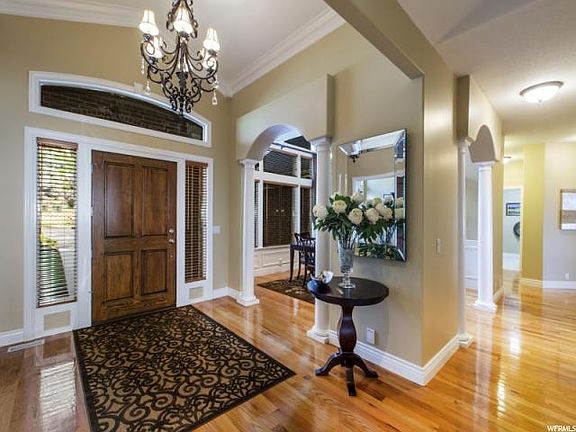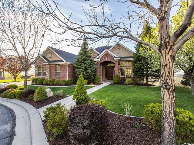VIEWS, VIEWS AND MORE PANORAMIC VIEWS from this gorgeous brick and stone rambler nestled in a quiet sought-after cul-de-sac. Privacy and seclusion while sitting out on two different covered decks enjoying the stunning sunsets and glorious Wasatch mountains. This home is absolutely meticulous! Offering a light and bright floor plan, perfect for entertaining, vaults, spacious master suite with cozy fireplace, elegant formal dining with pillars, beautiful main floor office and so much more! Flat front yard with stunning landscaping and extra parking space (room for boat) plus oversized 3.5 car garage. Minutes to Salt Lake international airport, world class skiing and mountain biking.