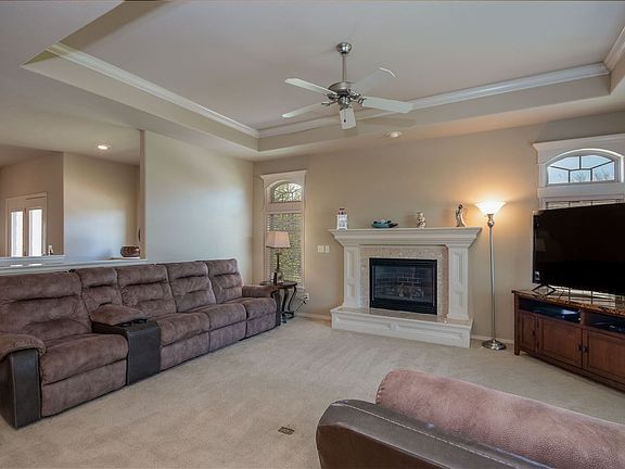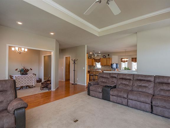 4 bedroom - 3 bathroom - 3 car garage brick home in the highly desirable Tiara Pines neighborhood in Derby! At the entrance you'll find a formal dining room that can be turned into a sitting room and adjacent to it is a spacious living room with a gas fireplace. The open concept kitchen has custom built cabinetry, a nicely sized island, built-in desk, and an eating area with access to the upper deck. Features a mid-level, walk-out finished basement. The master bedroom has its own private balcony and the en-suite master bathroom has a sliding door walk-in closet and whirlpool tub. Downstairs is a large family/rec room with wet bar for entertaining along with two bedrooms, a full bath, and finished storage area. Outside is huge fenced-in well tended yard complete with its very own fire-pit! New siding and paint completed in April of 2020! Call today to schedule your private showing!