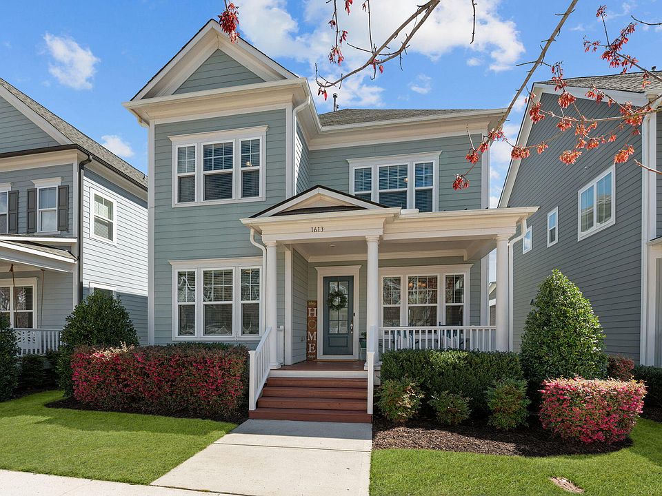 Quaint and charming, this 4 Bedroom, 3 Full bath home is nestled in the storybook neighborhood of Holding Village South Lake. With plenty of walking trails, a pool for splashing, Holding Lake where watching the sunset is a must, and plenty of pocket parks, this amenity rich community offers room to roam! Sip coffee on your large front porch or grill and gather with friends in your fenced backyard. 10 foot ceilings on the main floor! Spacious kitchen with HUGE island, plenty of cabinets for storage, adorned with white quartz counters & a subway tile backsplash. Quality SS Whirlpool appliances with Gas Cooktop for the chef! The family room opens to the kitchen, great for entertaining! So versatile, your Main Floor 4th Bedroom with en suite Full bath could be an office for remote working, so many possibilities and features floor to ceiling custom shelving. Relax in the extremely spacious primary suite and spa bath with a large tub and tiled shower, perfect for melting away the days stresses. Crown molding, wainscoting, a mudroom space with bench/shelving, and a thoughtful floor plan + a EV Charging and fully fenced backyard. This home is the perfect blend of comfort and outdoor living, along with yard maintenance done by the HOA. Easy Living on 1613 Highpoint! Minutes to schools, shopping, restaurants and the adorable downtown Wake Forest! Up to $1500 in buyer paid Closing Costs if preferred lender is used!
