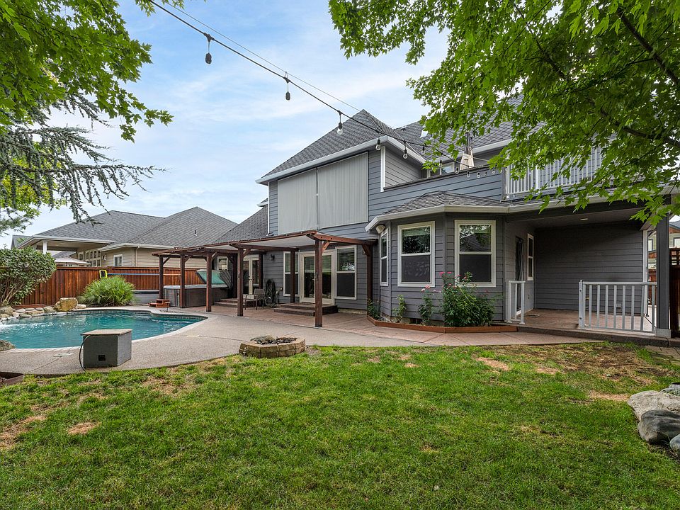 Welcome to 1613 Kentucky Ct, Central Point, Oregon. Nestled in the heart of Central Point, this charming residence offers the perfect blend of comfort and convenience. Situated in the highly sought after Bluegrass Downs, this home boasts extravagance. As you walk through the front door, you are met with an almost 20 ft high vaulted, a river rock fireplace and large living room. You will fall in love with the large and open feel of this home. The backyard has ample room for entertaining and a heated pool to enjoy. Primary bedroom, bathroom and one bedroom are on the first floor. The primary bathroom features a dual head shower and jetted tub. The master has a walk in closet.
