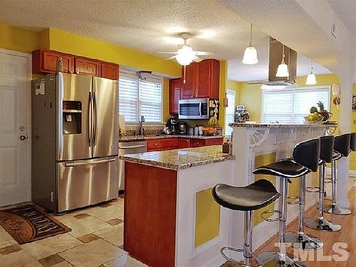 3 bedroom and 2.5 bathroom home in eastern Raleigh. Marvelous home with LOTS OF UPGRADES! Kitchen remodeled w/ ceramic floor, granite counter and island, new Samsung french fridge, microwave and dishwasher, extractor hood, stainless steel sink w/ garbage disposal. New hardwood on first floor. Upstairs new carpet. Bathrooms remodeled w/ sink faucets, new toilets, new shower set and ceramic floor. New unit (Carrier) heating & cooling. All exterior house painted. Garage remodeled w/ new insulated door and walls and a wall HVAC unit. Updated electrical wiring.