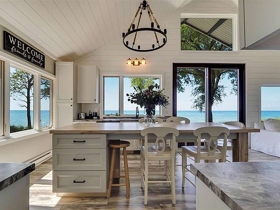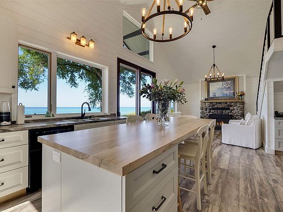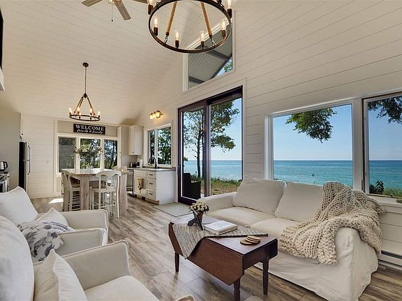 Beautiful, renovated Good Hart cottage, with stone fireplace, new kitchen and baths, custom windows showcase expansive westward views. 140 feet of Lake Michigan sandy beach. Main floor master and second story loft with great views, sleeps 6 easily.