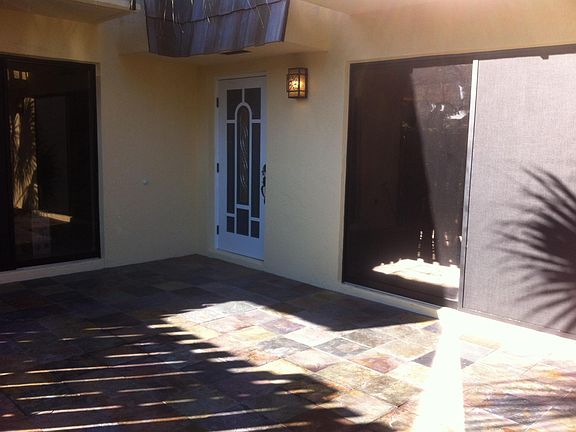 Two bedroom/two bathroom townhome in desirable Parkwoods development. All appliances included: refrigerator, dishwasher, stove, microwave, washer, dryer. Downstairs bath has single vanity and shower with full sized washer and dryer in attached laundry room. Electric fireplace in living room. Sliding glass doors in kitchen and living room open onto large, fenced-in patio. Two large bedrooms upstairs with wall-towall closets. Dual vanities in upstairs bath/shower combo Unit is close to community swimming pool. Parkwoods has a great location near restaurants, movies, groceries, shopping and short drive to beach. Tenant reponsible for water, electric, cable
