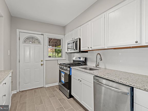 Wonderfully updated brick townhome in the Perring Loch community of Baltimore! Arrive on the main level and experience modern laminate plank floors from the light-filled spacious living room flowing seamlessly to the welcoming dining area boasting a gleaming bay window and a statement piece ceiling fan. Let your inner gourmet shine in the just updated kitchen featuring new stainless-steel appliances, dazzling subway tile backsplash, white cabinets, granite counters, and a center island before stepping onto the covered porch overlooking the private patio and rear lawn ideal for cultivating your own vegetable garden or spending time with your favorite pet. Three generously sized bedrooms and a shared hall bath highlighted by a beautiful ceramic tile surround wall with a custom mosaic tile inlay complete the picture-perfect upper level. The impressive lower-level recreation room is the ideal space for hosting festive gatherings to cheer on the home team during the big game! The adjacent bonus provides privacy as an office to maintain a productive work-from-home lifestyle or as a hobby room for your creativity to flourish. A full bath and laundry area complete the lower level. So many amazing updates: Freshly Painted, Kitchen Appliances, Bathroom Vanities and Fixtures, Ceiling Fans, Light Fixtures, and Modern Flooring Throughout! Conveniently located close to Good Samaritan Hospital, Morgan State University, Herring Run Park plus several museums and performing arts centers! Major commuter routes include I-95, I-695, I-83, US-1and MD-40.