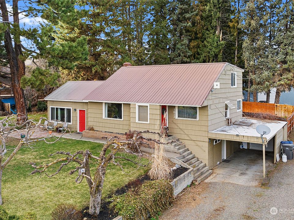 MOTIVATED SELLER! Classic Radio Hill home on .50+ acre. Multi-level living gives this home space for everyone. Entry opens to cozy living room w/ hardwood floors, 2 bedrooms and bathroom all on main level. Efficient radiant heat keeps utility costs low. Upstairs is a spacious primary bedroom with his & hers closets. Additional storage room could be converted to a bathroom to complete primary suite. Basement has large utility room, current exercise room, additional storage room & workshop. Additional rec room is located off the living room w/ custom-built bar that opens to outdoor entertaining space and fenced backyard, cedar shake siding. Finished 36x36 shop w/ 1/2 bath, 10ft. lean-to & compressor room. Property is served by private well.