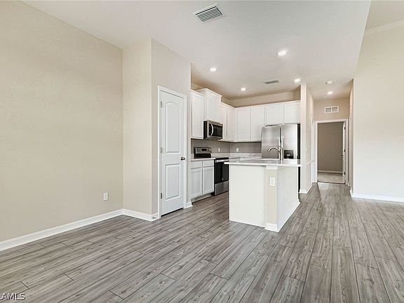 Style meets functionality in this Brickell floor plan in south Cape Coral. Three bedrooms, two full bathrooms and an extra flex room fill this new-construction home. Included upgrades such as stainless steel Whirlpool® kitchen appliances, quartz or granite countertops, 42” upper cabinets with crown molding and smart-home technology make this retreat move-in ready. Other features that come with the home include a programmable thermostat, a Wi-Fi-enabled garage door opener and an outlet with USB charging capability. The open kitchen, family room and adjacent covered patio provides the ideal backdrop for entertaining. With sizeable bedrooms and a master retreat featuring a walk-in closet, the Brickell plan is a beautiful home for families. The exceptional city of south Cape Coral offers residents a fantastic location with stunning conservation areas and world-class beaches.