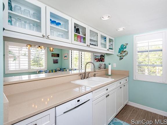 -This tasteful 3 bedroom 2.5 bath duplex overlooks the 18th hole of the Dunes Golf & Tennis Club. Call Eric Pfeifer 239-472-0004 for more information or visit: SunnySanibel.com to view all photos and details. With vaulted ceilings, skylights, soothing island colors & magnificently expansive gorgeous southern lake views, the living room opens to a new screened lanai and spacious deck beyond, creating an ideal entertaining space. Bright, cheerful newly renovated kitchen with large pass-through granite countertop, ample storage and Florentine-style tile flooring. Totally renovated beach style half bath with marble floor and high end fixtures. Spacious master suite and large bath with abundant storage. Closet stacked washer and dryer. Two upstairs bedrooms share large bath and large storage room. Additional ground floor storage room. Renovated with comfort and convenience in mind, this move-in ready duplex is par to none.Conveniently located near the Sanibel Causeway allowing for easy on and off-island access, the Dunes Golf and Tennis Club offers a semi-private golf course, driving range and golf shop, pool, tennis, clubhouse and award winning restaurant.