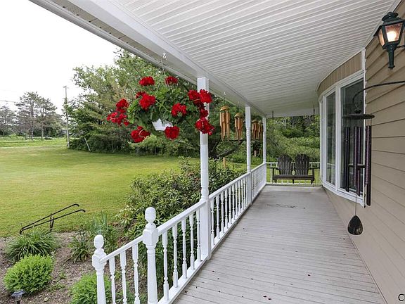 Entrance hall open to large LR w/FP, then flows into DR. Country kit w/DA open to step-down FR. Master BR has custom California Closet & private BA. Lots of space for family & entertaining. Hardwood floors throughout. Full bsmt & 2 car gar. offer lots of storage. Back deck overlooks yard w/sights & sounds of wildlife. Keep cool under the patio awning or take a dip in the solar htd pool. Enjoy spectacular sunsets from front porch. Adjacent lot also for sale! Conv. to "Y", shopping/pharmacy. 30 min. Albany!
