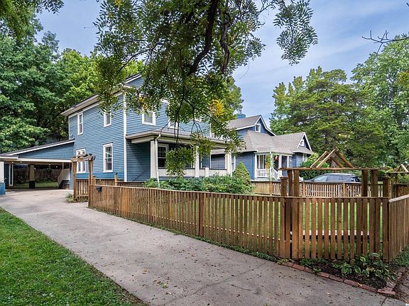 This beautifully maintained 4 bedroom, 2-bath home near downtown offers vintage charm with professional updates throughout. Built in an era known for quality craftsmanship, it features refinished hardwood floors, original woodwork, and charming architectural details. The main level includes a spacious living and dining area, half bath and stunning remodeled kitchen with custom cabinets, quartz countertops and stainless appliances. There is a natural entertaining flow onto the screened porch out back with unique vaulted, attached carport for overflow party space or covered parking. Upstairs, you'll find three bedrooms, one with built-ins, a full bath with claw foot tub and separate shower. The third floor is the fourth bedroom or could be used as a family room, playroom or office. Outside, enjoy relaxing on the welcoming front porch or screened porch in the back, surrounded by mature trees. Fenced yard. Newer HVAC and water heater. Energy saving solar panels convey free and clear with the house. Average electric bill is only $32/month! Located near KU, Lawrence High, Veterans and Victory Parks, and Mass Street shopping and dining—this home offers character, comfort, and convenience in one of Lawrence’s most sought-after neighborhoods. Don’t miss your chance to own this beautiful gem in the heart of Lawrence!