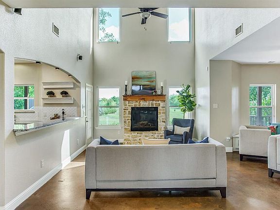 Wow! Stunning remodeled estate on almost 2 acres in popular Keller High district! Opportunity for horse property with existing barn with electricity that accommodates 2 cars, lovely pond, mature trees sprinkled among the pasture for shade, and Whataburger themed chicken coop. Enjoy a fire in your outdoor fireplace located on your back porch that wraps the entire house. Inside you will find a soaring living room ceiling with fireplace as a focal point, tons of natural light, easy maintenance concrete floors downstairs with master suite, formal dining, open Floorplan, 4th bedroom and bath and oversized walkout laundry. Upstairs features 2 bedrooms with their own baths and nice TV or game room. Roof 2016, AC 2018.