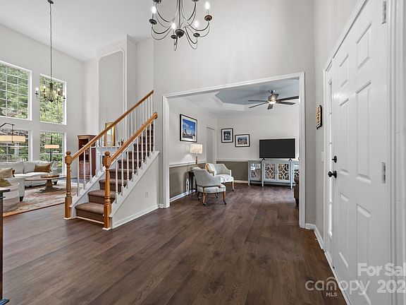 Stunning renovated home with Primary on main floor! Owner has spared no expense to make this home warm and inviting. LVP flooring, gorgous light fixtures and natural light from the expansive windows makes it shine! 2 story Foyer & Great room with a two sided fireplace open to the Kitchen. Stainless appliances, installed new lighting, backsplash, Quartzite counters. Custom blinds and shades in all rooms, Spacious Primary ensuite on main with tray celing, walk-in closets plus large bath with garden tub. separate shower & dual vanities. Formal Dining with tray ceiling, Guest room & full bath. 2 additional Bedrooms & full bath upstairs. Backyard was transformed with the beautiful plantings and trees, fully fenced with added walkways & retaining wall. Renovations include replacing the garage doors, installed gas line for stove and tankless water heater, added whole house surge protector, wrapped & resided all vinyl areas of exterior and so much more. You do not want to miss this one!