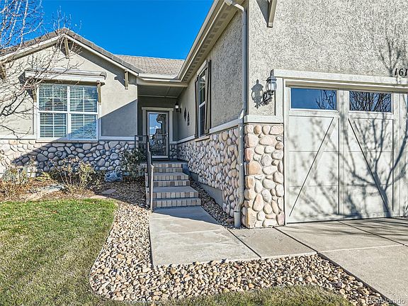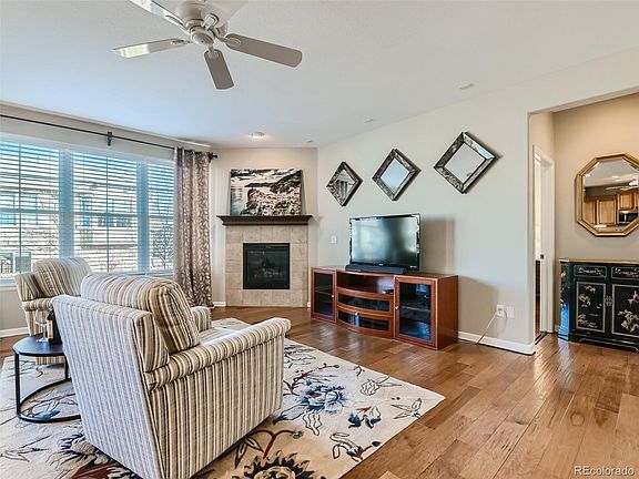 Best deal in Anthem Ranch. Adorable Arapahoe Model with 1554 sq feet smartly designed. No stairs, easy 1 floor living with 2 bedrooms plus a separate office with glass French Door. Extended hardwoods, LVP, upgraded carpet, freshly painted and new appliances. Updated kitchen with new solid surface counters, granite composite sink, glass backsplash and open floorpan. This home boasts an eat in kitchen, breakfast bar, spacious living room with gas fireplace, window coverings, ceiling fans throughout and surround sound with speakers. Upgrades included electric shade on back patio, epoxy garage floors, finished, taped and textured garage walls, workbench and lots of extra cabinets. Upgraded lighting and upgraded primary bathroom with large walk in closet. Immaculate interior, no pets and well loved home. Don’t miss viewing the Aspen Lodge with over 30,000 sq ft of fitness, multi purpose rooms, indoor/outdoor pool, hot tubs, indoor walking track, billiard room, library and over 130 clubs. Tennis and pickleball courts onsite and over 48 miles of trails around the neighborhood. Come see this beautiful home at an affordable price!