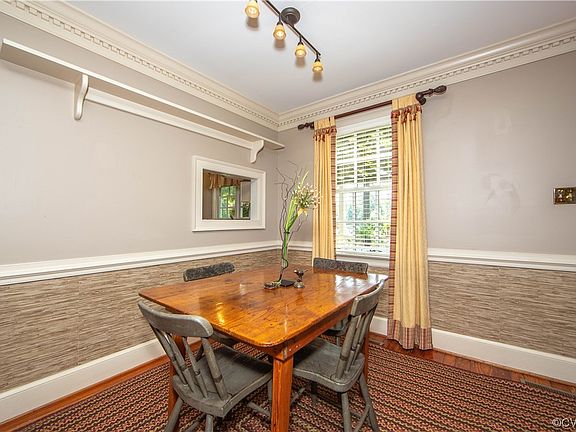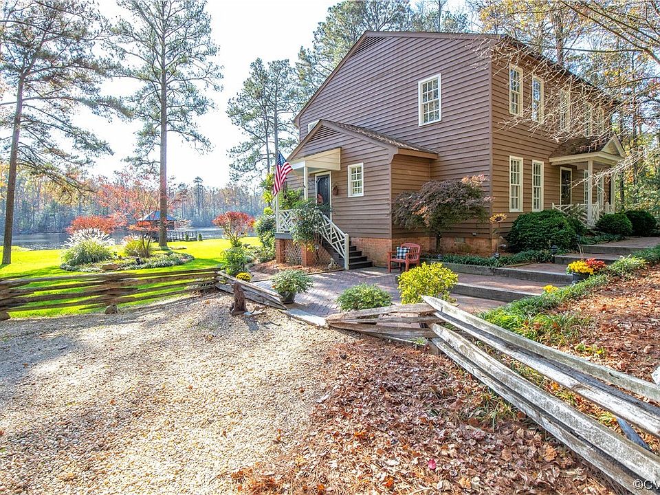You'll love this captivating 2-story Colonial nestled on a picturesque 7-acre property with breathtaking water frontage on a tranquil pond. Upon entry to the home, you are greeted by the timeless charm of heart-of-pine flooring, gracefully stretching throughout most of the house. The warm hues and rustic allure add character to every room, creating an inviting atmosphere that welcomes you with open arms. Custom molding accents every corner, showcasing the craftsmanship that went into creating this masterpiece. With eco-consciousness in mind, the home boasts geothermal heating and air conditioning, providing unparalleled energy efficiency and climate control throughout the year. The exterior is as captivating as the interior, with a large landscaped yard offering endless opportunities for outdoor activities and entertainment. One of the main highlights is the screened-in porch at the end of your private dock, beckoning you to relax and unwind while taking in the soothing views of the pond. This property is an idyllic retreat that feels far away from the bustle of the city, yet it's conveniently located for easy access to modern amenities, interstates and Fort Gregg-Adams (Fort Lee).