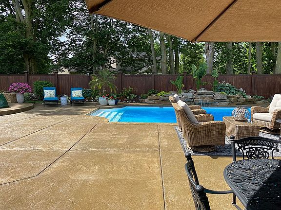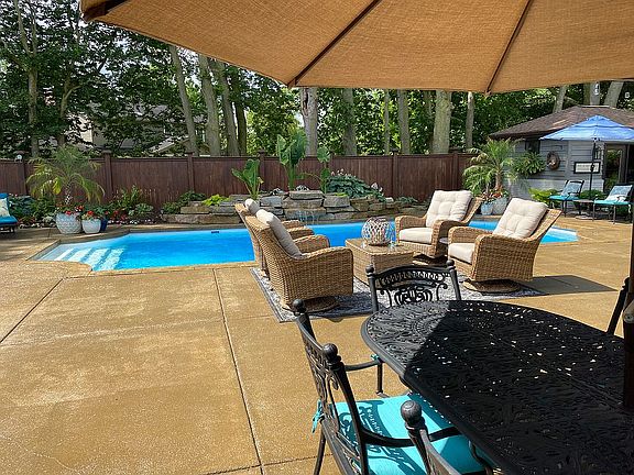 Newly renovated brick ranch with numerous custom finishes throughout. Resort like living in your own backyard oasis with saltwater pool and waterfall all enclosed in beautiful cedar privacy fence with custom gates. Walkout bar with 4 French doors that open to the patio and pool area that includes a stone fireplace to heat bar in the winter and an outside stone fire pit. Separate pool house building for pool equipment and storage. New professional landscaping in 2019 includes beautiful up lighting. Exterior brick painted in 2018 with custom shutters and garage doors. New exterior lighting in May 2020. New roof 2018. Custom built pergola with outside grill built in 2019. New air conditioner unit in 2018. Large Master suite and walk-in closet with custom cabinets and vanity. Master bathroom includes double vanities, vessel tub and extra large steam shower. Guest bathroom has a beautiful shower with custom glass door and Restoration Hardware sink and vanity. Kitchen upgraded with all new Kitchen-Aide appliances. Gas range with custom made range hood. Amish built cabinets and island with black leather granite countertops. Office with built in desk and storage. Oversized 3 car garage that is painted and epoxied floor. Luxury Vinyl Laminate flooring through entire home. We incorporated the 3rd bedroom in our master suite so the home currently only has two bedrooms but can easily be converted back to three bedrooms. You won’t find a more meticulously cared for and loved home.
