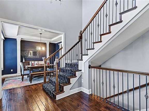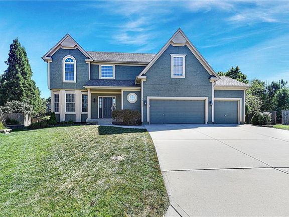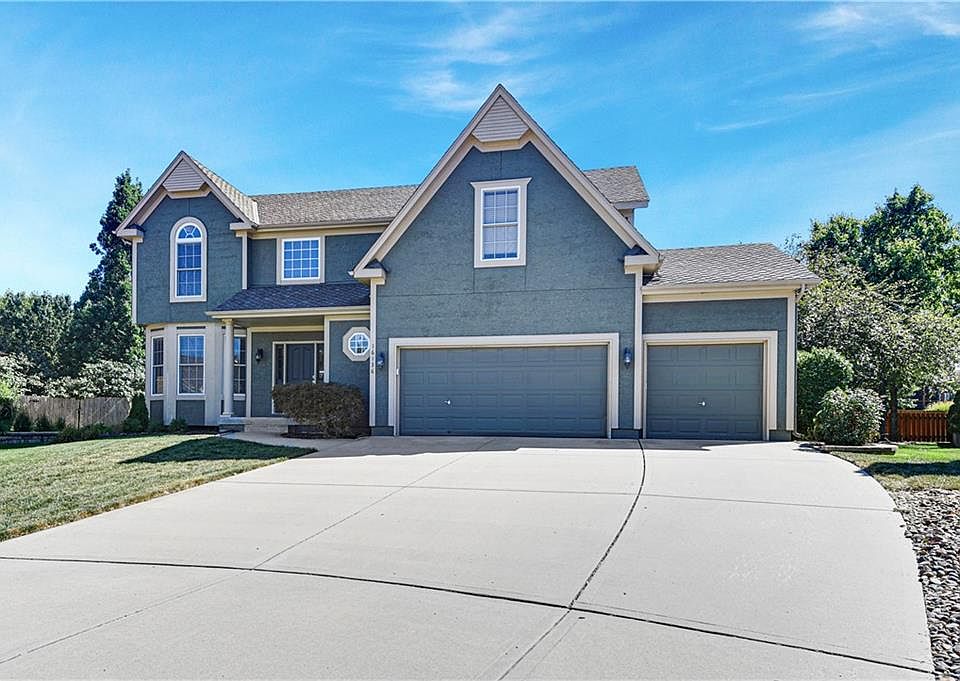 Gorgeous Two Story nestled at the very end of a perfect cul-de-sac. 5 bedrooms with 3 full baths, and two half baths. New back patio, giant LOT, new lighting thru-out, Large granite kitchen island for entertaining, new hardwoods thruout entry way, dining room, hearthroom, and kitchen. See thru fireplace hearth to living room, new carpet, laundry upstairs with 4 bedrooms, and 3 full baths, formal dining room, finished basement with wet bar, 5th non-conforming bedroom, half bath, private office or workout room, and rec room. Three car garage. Award winning Olathe Schools, close to shopping, restaurants, and hwy access. You'll love it.