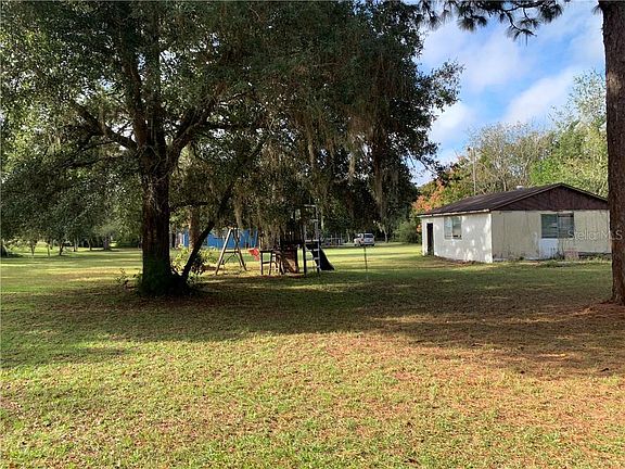 Sitting on over two acres amongst mature landscaping and trees, this five bedroom and two bath screen-in pool home is awaiting your magical touch. Open the gate and drive up the lane to home. Walk this beautiful property and think what you would do with all this land. Swing sets, fire pit, vegetable gardens, flower gardens, decorative benches, and statues in the shade under the trees, so much room to make your own oasis. Turn the small building to the left in the back yard into a play house, man cave, mom escape, so many choices. Attached to this building is a fenced dog pen. Maybe turn the building into a pet condo with its fenced in yard. Two car garage sits on the back west end of the property and is being used as storage. Home and property has a chain link fence which you may want to change to a white pvc fence running around the home and property adding privacy. There are two septics on the property and one well. Screen-in brick lanai with pool sporting decorative tiles. Nice. Front entrance has double wooden doors and to add to the county feel double screen doors behind the wooden doors. Sliding glass doors from family room and from dining room out to the backyard. From these rooms, great views of the property. Long front porch that will look awesome with rocking chairs. Side patio to the east side of home. Might just be nice for having breakfast, lunch, dinner, or just relaxing and reading. Must see the barn window shutters in the downstairs bedroom. Unique. Use your imagination, add your special touches, and make this your oasis today. Sit back and enjoy. All rooms and garage sizes are estimated. Buyer and Buyer's agent to verify both room and garage sizes. Parcel R25 222 18 3100 0000 0890 is included in the sell of property making this over 2 acres.