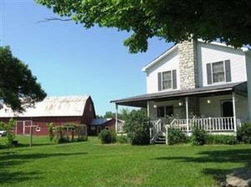 Newer farm house w/old-world charm. Relax on 9x11 front porch or 8x26 back porch. 40x70 barn w/loft, 30x30 2 car-garage. Part wood w/creek, 2 ponds & four wheel trails. 25 tillable acres-pastures w/fence.