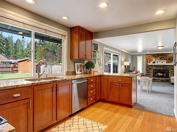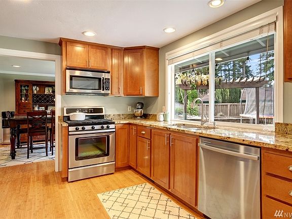 Hard to find 4 bed Mid-Century rambler nestled in the heart of Briarwood. Vaulted cedar ceilings and an impressive brick fireplace greet you as you enter. This sprawling 1 story floorplan continues to the kitchen and great room with upgraded cabinets, counters and appliances. Luxury features like crown molding and wainscoting extend through the home. Entertain outdoors on the large concrete patio, with plenty of level open grass and mature landscaping in your fully fenced yard. Issaquah schools!