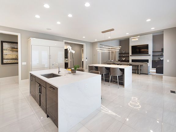 Situated on the 11th hole of the Tom Watson designed golf course, this custom-built home oozes modern luxury at its finest. The landscape frames the meandering drive that leads to a 3-car garage and sets the stage for opulence. Double-glass entry doors look straight through to the disappearing sliders that marry the indoor and outdoor spaces. Natural light beams through to highlight custom blown glass fixtures. The two-story foyer allows for dawn-to-dusk sparkle across the marble floors. The flow of the entertainment spaces is captivating. The dramatic great room with linear fireplace opens to the equally sized covered porch area with brick fireplace, offering expansive golf course views over the pool and patio. The pool is designed with an intricate tiered spa, lighting, patio and step stones set symmetrically to provide an oasis that compliments the lay of the land. It's easy to fall in love with the gourmet kitchen with the state-of-the-art stainless Wolf appliances, polished quartz counters and lacquered cabinetry. The double island design offers an array of seating options in addition to the banquet-sized formal dining room. The main floor master suite exudes romance and relaxation. The master bath is spa-like with its elongated design, free standing tub and massive shower. The closet features private laundry space, secured cabinetry, showcases and tempered cabinetry for climate sensitive pieces. Upstairs the 4 guest suites are appointed with hand selected finishes including designer tile, lighting and cabinetry. The terrace level offers an array of opportunity with media, billiard, guest suite, bar and weight room options waiting for you to finish. The home is fully equipped with smart home features. 2020-06-09