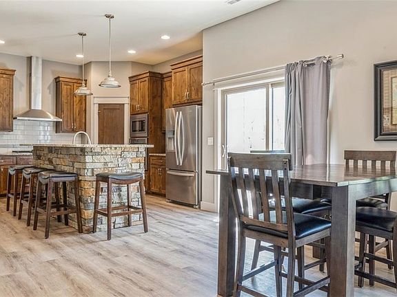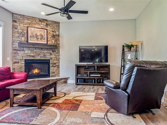Stunning Home w the feel of a brand new build! High end finishes, wide open floor plan & cathedral ceilings. Rare opportunity to live in a retreat like setting backing up to a gorgeous pond & wide open green space! Situated at the end of a quiet cul de sac ideal for neighborhood get togethers. Floor to ceiling stone fireplace is the focal point of the spacious Great Room w walls of windows overlooking the large pond and wildlife. The dining area/great room open up to a fabulous chef's kitchen w a large stone & granite kitchen island. Stainless steel appliances and 2 pantry's! Large laundry room off kitchen next to the Primary Bedroom is super convenient. Vaulted ceilings and sliding glass doors lead from Bedroom to the sprawling back patio w beautiful peaceful views of the water and gorgeous backyard. Humongous closet and prinary bathroom w walk in shower plus tons of built in cabinetry. 2nd bedroom and full bath on the main level could be an office or playroom. The additional bedrooms and full bath on the 2nd floor have thier own Huge Great room w a kitchenette area & wet bar perfect for entertaining for Football games or movie night. Oversized 3 car garage w tons of storage & its own storm shelter! Don't miss this one its a once in a lifetime chance to own your Dream Home!