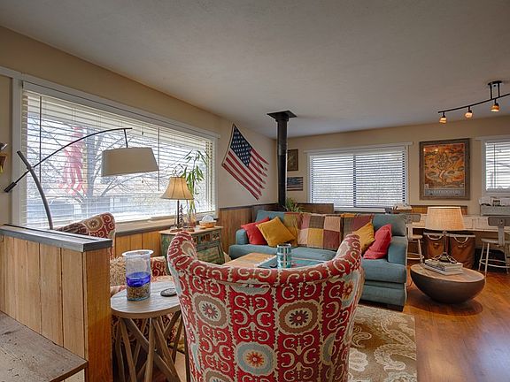Delightful! Perfectly describes this 2 bed/1 full bath home.The living room has a charming wood stove, built in bench & laminate wood floors flow through out the house. Beautifully updated bathroom; vessel sink, tile floors, abundant storage & new tub wall insert. Private fenced yard w/ back deck (hot tub ready) & an oversized 2 car detached garage. Walking distance to grocery &downtown shopping.