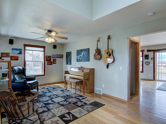 There is SO MUCH VALUE in this 2500 square foot two story WITH a finished walkout lower level on an acre! Located in a neighborhood with room to stretch out! You will love the natural light that floods every room from windows all the way around, and lovely views out the expansive windows in the back. There are so many options on the main floor, with a separate living room (currently the music room) and a nice separate home office space (could be a dining room or den). The sunny kitchen has quartzite counters and stainless appliances. The patio door walks out to a very spacious deck that overlooks the big backyard. The deck has a built-in retractable awning and clothesline! There are three bedrooms up, and a private master with bath and large walk-in closet. The walkout lower level has a family room area, wet bar, and 3/4 bath. An oversized two car garage has an expanded space you will appreciate! There is even a big strawberry patch behind the garage! Don't miss this opportunity!