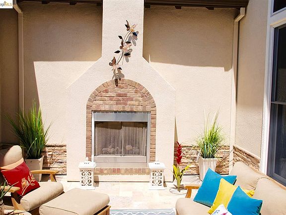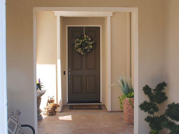 This home is a 10. Gated Trilogy at the Vineyards luxury home. Premium lot with solar. Easy walking distance to the Clubhouse and amenities. Model home with upgraded interior cherry wood accents throughout. Open concept design with 16 foot ceiling in living room. Chef kitchen with expansive granite counter, farmhouse sink, and 5 burner gas stove. New dishwasher, double oven/convection and warming drawer. Built in refrigerator matches upgraded impressive cherry wood cabinetry. Beautiful portico entry leads to a mosaic tile entry. Master bedroom with luxurious bathroom including a jetted spa tub. Inner courtyard with fireplace, limestone tile with sandstone veneer and electric awning. Corner private lot with beautiful front landscaping has views of open space and parks. Fully landscaped backyard with pavers, water feature, mature trees and plants. Garage includes custom epoxy flooring and built-in cabinets and workbench. Wired for sonic. Washer/Dryer do not stay.