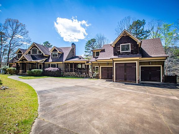 This one of a kind custom built lake house is situated on 2.21 acres in Outback Cove, boasting 720 feet of shoreline with year round water and a private boat ramp. The main house offers 4 bedrooms/4.5 baths with breathtaking views of the lake from every room. Connected by a covered breezeway is additional 1 bedroom/1bath apartment with an oversized three car garage built to store your boat. The primary suite located on the main level has a stone fireplace, walk in closet, and a private screened porch. The primary bath offers a steam shower, jacuzzi tub and double vanities. The two story open concept great room opens to a fully outfitted kitchen and dining area perfect for large family gatherings. The upper level has a 2nd full suite and bathroom and a cozy reading nook. The terrace level has a bedroom and a bunk room, each with a private full bath and a 2nd full size laundry. Also featured is a family/game room, fireplace and a large theatre room. THIS HOME IS SOLD FURNISHED!