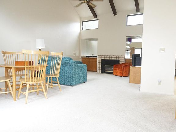 BRIGHT AND OPEN HOME IN .ONE YEAR OLD paint, carpet, and kitchen with hard surface counter tops! This well cared for home is across from clubhouse for convenience and borders huge open space with seasonal creek behind. Tons of wildlife and private forested setting. Large open living area .Sliders in the kitchen cabinet for easy access.Master with balcony over the creek.large second and 3rd bedroom with sliding door to outside and great backyard. Additional parking across street. Beautiful pines all arou nd.