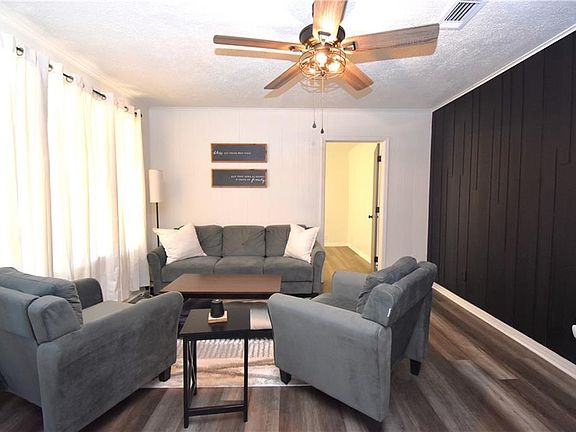 Step into this inviting home where cozy charm meets modern updates! Admire the welcoming covered porch adorned with rustic timbers and warm wood tones. Inside, revel in the abundant natural light dancing through each room, showcasing the fresh updates including new flooring, designer fixtures, and a clean coat of paint. The heart of the home boasts a dining room, breakfast bar, and a stylishly equipped kitchen featuring newer appliances and a rustic vent hood. Down the hall, discover two spacious bedrooms complemented by a sleek full bath with a shower-tub combo. A tucked-away guest bedroom off the living area offers versatility. Outside, unwind on the expansive covered back porch, perfect for enjoying the shaded backyard retreat. Complete with a covered carport, this captivating residence awaits its new owner to make it their own!