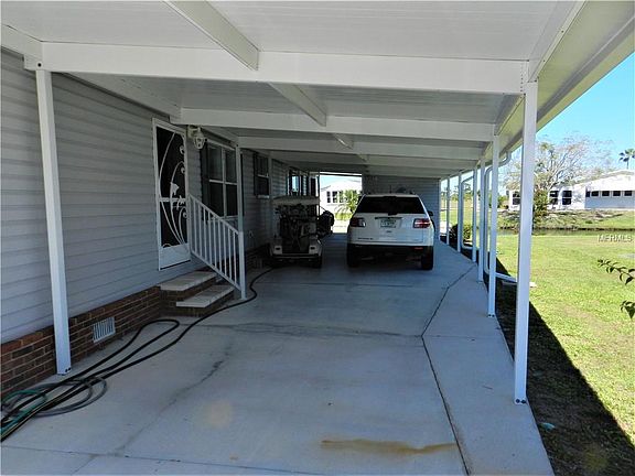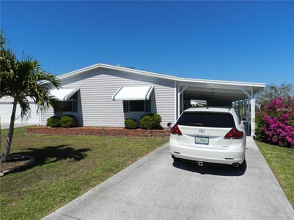 Back on Market 1-7-2019. Buyer financing fell through. A great opportunity is here in this 3 bedroom, 2 bath with large lanai and carport that includes everything. All furniture, housewares, pictures etc. This upgraded Palm Harbor has a wonderful, open floor plan with generous room sizes. The carport will easily handle 2 cars and your golf cart. The $100 monthly fee in this over 55 community includes the clubhouse, pool and storage area to park your boat or RV. The average water/sewer bill is $60 per month and the lawn mowing is very reasonable(under $40 per month). Extremely affordable living is this quaint community. There is a very inexpensive 9 hole golf course adjoining this community. Hurricane paneled protection for the home. You can be living here in as little as 10 days from an agreed, cash contract!!