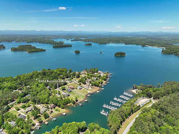 1614 Keowee Lakeshore Dr: This waterfront home, in a wonderful and convenient location, is available for sale for the first time. Located just a couple of miles from major grocery stores and less than 10 minutes to either Clemson University or anything needed in Seneca, makes this a highly desirable lakefront location. The current owners built this home in 1990 and were forward-thinking with an open design, a main-floor owner's suite, a large screened/EZ Breeze porch, and beautiful lake views over the nearly flat waterfront lot. The platform dock is in great shape, and we have applied for a large covered, double-decker dock (agents see supplements for a copy of the dock diagram used in the dock permit application). Contact the list agent for more details and an update on the dock permit. The main level also has a large den/office space as well as a formal dining room, so there's plenty of entertaining and quiet space for full or part-time occupancy. The lower level provides great guest lodging and shop/storage space. There are 2 bedrooms, by definition, on the lower level, as well as a large room that could be used as a bedroom (this room has a window but no closet; there is ample space to add a closet if desired), and there's a room on the far left that was used as a hobby/craft room that could be converted to your "best use" of space. The home is just over 3000 sq. ft. so it is large enough for plenty of friends and family to visit but just comfortable enough for everyday quiet living. The lot is over an acre, very gently sloping, and has approximately 184' of waterfront. The no-wake cove provides great protection and views—even some mountain views looking out the cove! There is ample storage via the garage, attic, basement and storage building behind the home (great for gardening, yard equipment, and/or lake toys).
