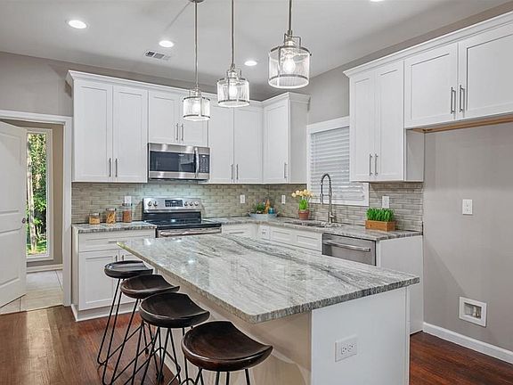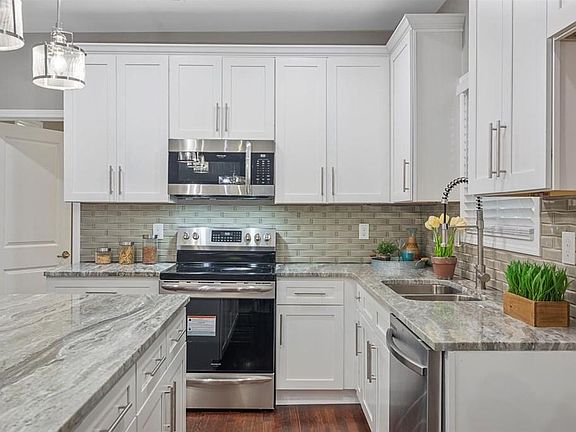 - Kitchen Features: Breakfast Bar, Stone Counters, Kitchen Island, Cabinets White