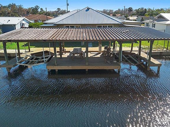 4 bedroom canal front home!!! Easy access to the St Johns River where you can enjoy the best fishing around from your private dock. Just over 2200 sq ft block home, featuring 4 spacious bedrooms, 2-bathrooms, metal roof, with hardwood floors and tile throughout with a large Florida room overlooking the water. This home is situated in a quiet neighborhood on a dead-end street. This property boasts incredible features and direct access to the St. Johns River and ample storage to store all your outdoor equipment and fishing gear. Expansive boat dock (60'x25') equipped with two boat lifts, ideal for waterfront activities and entertainment. This home offers the perfect blend of comfort, style, and outdoor enjoyment weather you are a fishing enthusiast, or prefer a leisure boat ride. Minutes from waterfront dining and crystal-clear springs. Don’t miss the chance to make this waterfront gem home!