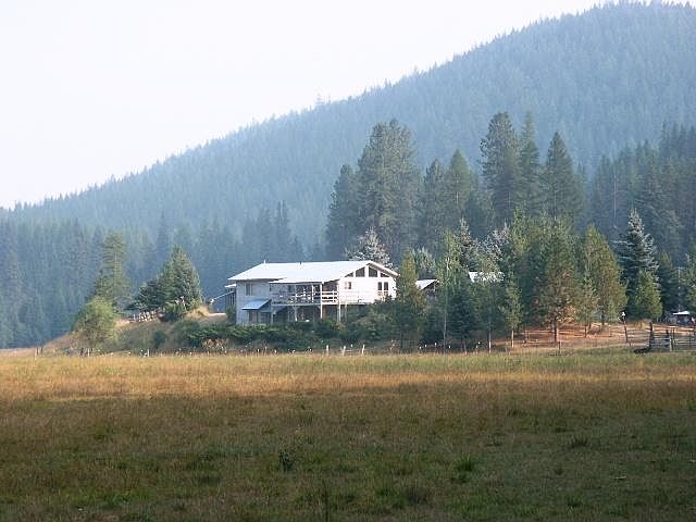 Your own private valley nestled among the hills. 356 Acres almost completely surrounded by Forest Service. 2800 Sq ft 4 br, 3 ba home with FA propane and wood furnace on exterior of home. Covered back porch overlooks the meadow. Gravity fed spring to the house and several springs that water livestock & sub-irrigate pasture. Appx 81 Acres fenced pasture & 273 Acres timber. Detached garage, several sheds including shop and machine shed. 20+ miles to Bonners Ferry. This one is special...
