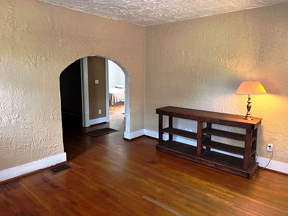 This cute house has original stucco walls, archway entries, and beautiful hardwood floors. Come and relax on the screened in front porch, or enjoy a BBQ on the back porch. Living room with stone fire place and gas logs leads to large dining room, and then to a huge den. Two good sized bedrooms share a hall bath. Appliances include, electric stove, refrigerator, dishwasher, built-in microwave with a fun black and white check kitchen floor. Downstairs is a laundry area, a large walk in closet and tons of storage space. Large fenced backyard where pets can roam. This house is walking distance to parks, library, restaurants, and is on many running routes.