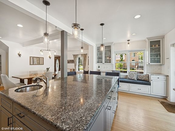 *** Multiple offers have been received. Highest and best offers are requests by Sunday, May 19 at 8:00PM. No escalation clauses or letters please*** Welcome to this charming oasis nestled on a quiet corner overlooking the serene expanse of Brickton Park. This meticulously maintained residence exudes curb appeal, boasting newly installed vinyl siding adorning both the house and garage, complemented by a fresh tear-off roof completed in November 2023. Step into the heart of the home to the beautiful kitchen offering modern functionality and style. Abundant storage and counter space along with several seating areas complete the room. Sliding doors seamlessly extend your entertainment space onto the deck, overlooking the fenced yard-a perfect retreat for outdoor gatherings and relaxation. The first floor offers versatile living spaces, featuring a formal living room for gathering, alongside a flexible bedroom doubling as a cozy retreat with its convenient Murphy Bed. The renovated first-floor bathroom boasts gold hardware, textured subway tiles, and a sleek seamless shower door. Retreat to the generously sized primary suite with vaulted ceilings and a private deck, offering plenty of space for a king-size bed and other furnishings. Luxuriate in the en-suite bath, complete with lavish amenities, while a walk-in closet and convenient laundry facilities add to the suite's allure. Two additional bedrooms offer comfort and functionality, boasting ample closet space to accommodate your lifestyle with ease. Gleaming hardwood floors throughout. The finished basement offers lots of flexible space that could be used as a playroom, family room, gym or office. With its blend of modern updates, luxurious finishes, and prime location, this home offers so much in Park Ridge. Don't miss your chance to make this your forever home.