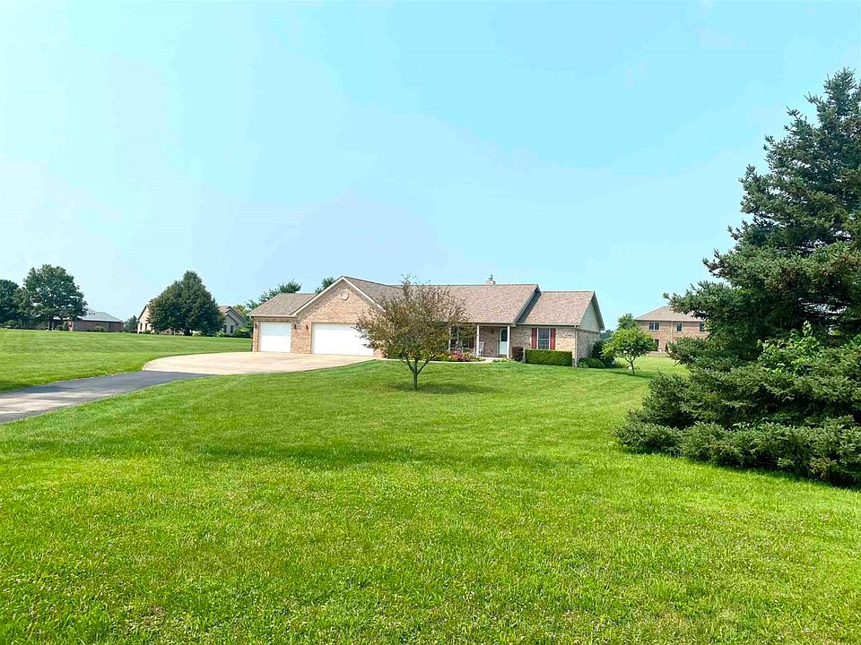 Privacy and solitude here on 1.1 acre in the charming town of Winchester! This gorgeous 3+2 single story has so much to offer with a 3 car garage, sun room, extra "Bonus room"/ Rec room, sewing/craft room, play room, gym, etc. The large front living room has a massive wall of book cases, gas fireplace and a large, open kitchen offers an inviting island and gas stove. Also- a master bed/bath with walk-in closet, jetted tub...separate step-in showers, dual sinks and beautiful stained glass window to bring in loads of natural light. A superb location here...just close enough to town, yet far enough for the country living you've been looking for. Come see what all the quaint town of Winchester has to offer with a beautiful town square, classic movie theater, excellent restaurants, Winchester Golf Club, Winchester Speedway and a small town, friendly vibe.