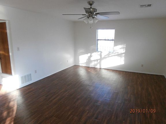 Car port, washer and dryer hookups, wood look floor, ceiling fans, 2 inch blinds, side by side refrigerator with ice maker, glass top stove, well lit, fenced yard. Energy efficient heat pump and LED Lighting through out. No Pets. First two weeks free. High speed Wi-Fi is included. The pictures are of this unit. No Pets. Free WI-Fi. The first two weeks are rent free. Move in will require only a $460 Deposit and a $40 Application Fee; $500 total move in. WiFi is included, 80 Meg (fast)