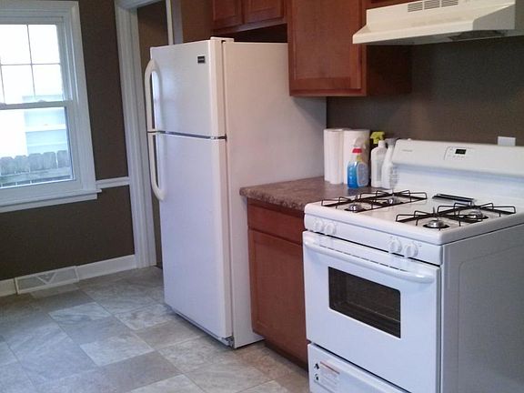 Cute 3bd, 1 bath. Two beds on main level, 3rd bedroom upstairs. Beautiful, original hardwood floors in living room and upstairs bedroom. Finished basement with w/d hook ups in laundry room area and work space. Fenced back yard (dog ok with pet deposit TBD). Detached 1 car garage and 2 additional parking spaces in rear. No section 8. All utilities are separate. No section 8.
