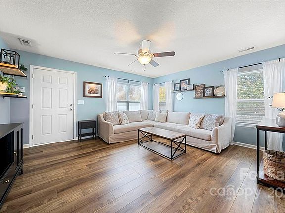 Charming must see home in Hummingbird Ridge! No HOA! Corner lot w/ mature trees & fenced in yard. Spacious main level w/ open floor plan & stunning brand new LVP flooring throughout. Open great room w/ tons of natural light perfect for relaxing. Kitchen features stainless steel appliances, breakfast bar, ample cabinet/counter space, & tile backsplash! Sunny dining area features modern light fixture perfect for hosting gatherings! Bathroom completes main level. Owners suite features vaulted ceiling, walk-in closet, & en-suite bathroom w/ dual vanity! Spacious secondary bedrooms, bathroom, & laundry complete upper level. Backyard features privacy fence, deck, & shed! Great Concord location with close proximity to Concord Mills, Cabarrus Arena, Charlotte Motor Speedway, schools, parks, & restaurants!