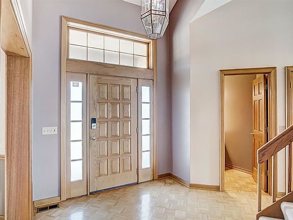 Bob Buescher built home. If you were to build this large of a home today it would be close to $500k. On almost .5 acre, this home has been freshly stained and has a new concrete driveway and newer roof. Ready to move in, the home has parquet flooring in most of the main living area. The two story foyer looks unto the dining room, kitchen, breakfast room and formal living room. The guest bath is just off the entry and have been completely updated. Off the formal living room is a den that could be the 4th bedroom. The formal living room, with vaulted ceilings and brick gas fireplace is bright and open with lots of windows to enjoy views of the lake from the comfort of your couch. The kitchen is a chefs dream with lots of room to move around and an abundance of custom Grabill cabinets with lazy susans in the corners and large double door pantry. The three seasons room is cooled by an independent unit and is ringed by windows. There is a large pantry just off the three car garage and next to the laundry and half bath. The second floor has three bedrooms with two sharing a full bath with split use capability. The master offers more lake views and ample natural lighting and has a large bath with garden tub and walk in access to the attic storage. The basement has a full bath and guest room with two large entertaining areas and lots of storage in the utility room. There is a new sump pit and radon mitigation system already installed. The wrap around deck is just off the three seasons room and perfect for relaxing at the end of the day.