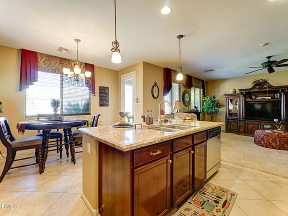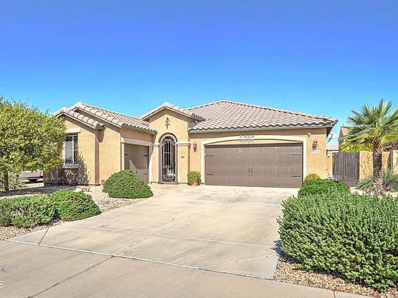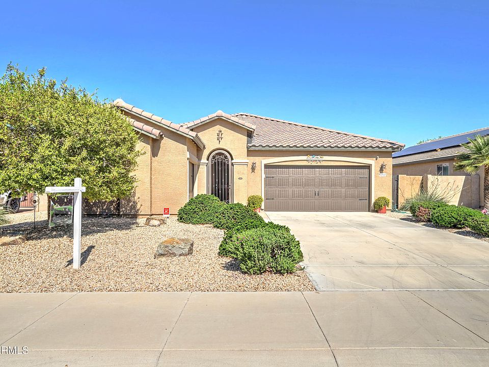 Beautiful well-kept home. Nestled in the desirable Palm Valley Community. Close to the 303 Freeway and all new restaurants and shopping facilities. Open Floor plan with carpet and tile. The main bedroom bathroom has double sinks with separate shower and tub and walk-in closet. The back yard has a covered patio, mature trees and a nice grass area. Refrigerator, Washer and Dryer do not convey.