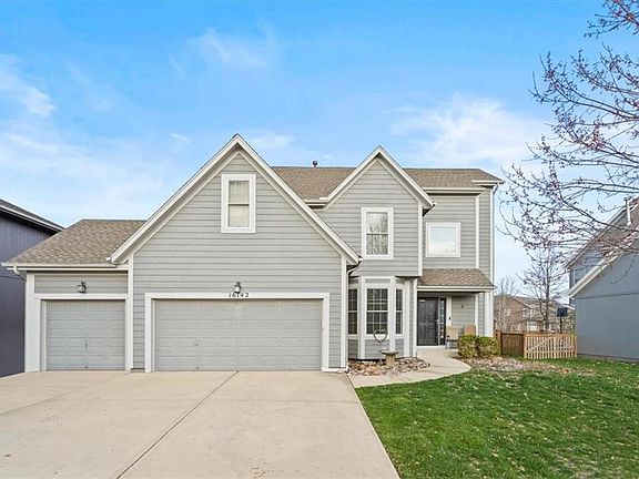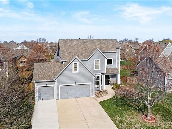 Welcome to your new home in the award-winning Olathe school district! Hurry into this beautiful 2-story that features over 2,200 square feet. There's plenty of room for you and your family to spread out and make memories! As soon as you enter, you’ll be greeted by beautiful hardwood floors, soaring ceilings, and natural light flooding the home. The main level boasts a spacious living room, dining room with a bay window, and a chef's kitchen that will make your heart skip a beat. The stunning kitchen features new customized bamboo cabinets, granite countertops, rich hardwood floors, undercabinet lighting, a gas range, beautiful black ceramic sink, and stainless-steel appliances. You'll love the expansive island with ample seating, perfect for preparing meals and entertaining guests. The living room is perfect for relaxing on cozy nights with its gas log fireplace. The main level also features a formal dining room with beautiful bay windows. Upstairs, you'll find a luxurious primary suite with a tray ceiling, walk-in closet, and an ensuite bathroom that will make you feel like you're at a spa. The primary bathroom has double vanities, a shower and large soaker tub. There is a large dormer bedroom with a reading nook and shared bath with the fourth bedroom. The fenced-in backyard is perfect for entertaining. The basement has been stubbed for a bathroom and has an abundance of storage space, perfect for keeping your home organized and clutter-free. This home has been well-maintained and has a young HVAC system that is only 4 years old. With easy access to major highways, shopping, and dining, this home truly has it all.